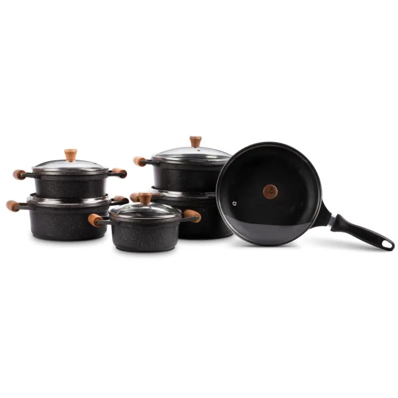 Além da qualidade, o conjunto de panelas antiaderente da Cava e Cava se destaca pela sua variedade de tamanhos e peças.