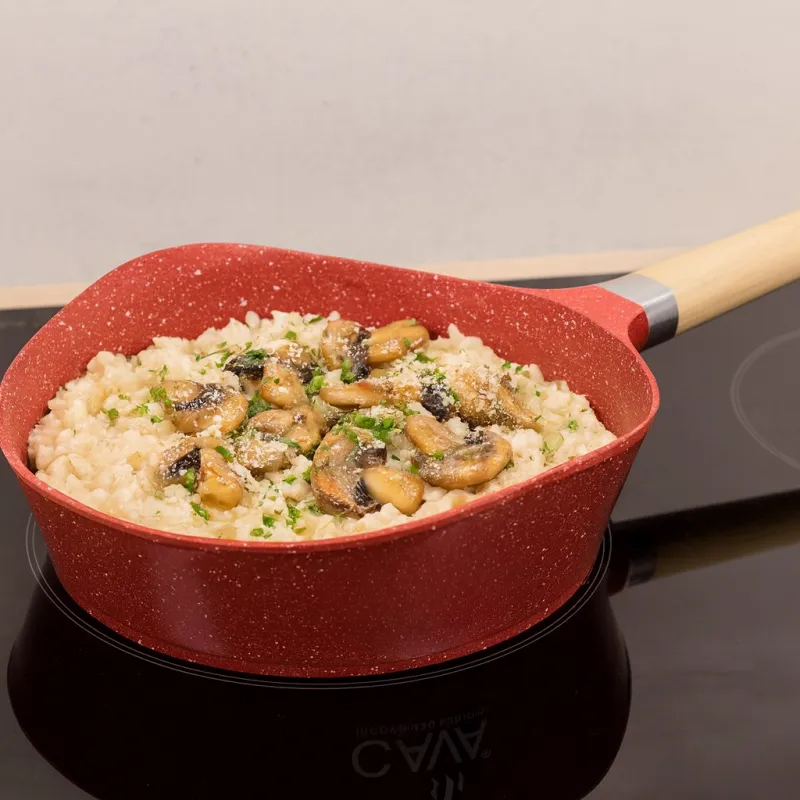 A cerâmica reforçada presente nas panelas da Cava e Cava Metalúrgica proporciona estabilidade durante o cozimento, distribuindo o calor de forma uniforme e contribuindo para um preparo eficiente dos alimentos.